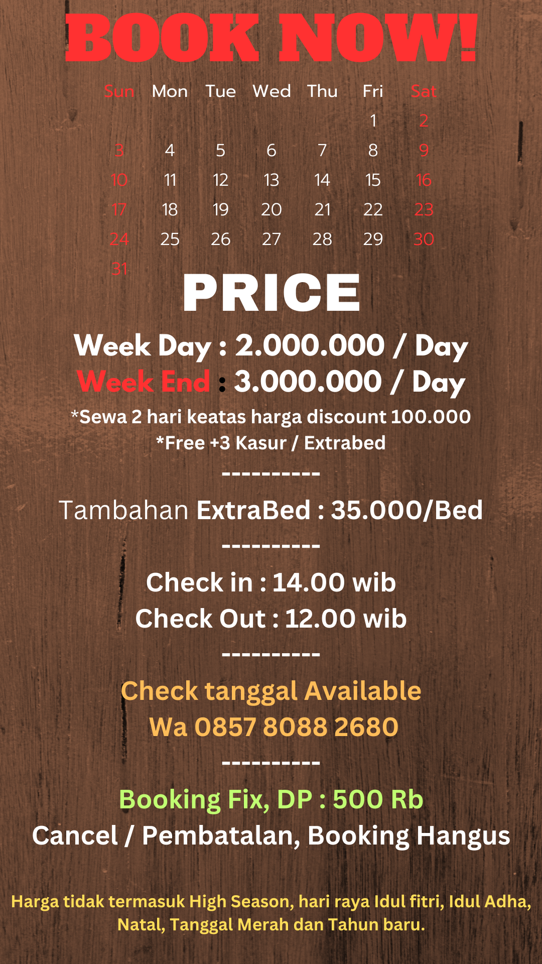 Minggu - Kamis : Rp 1.700.000