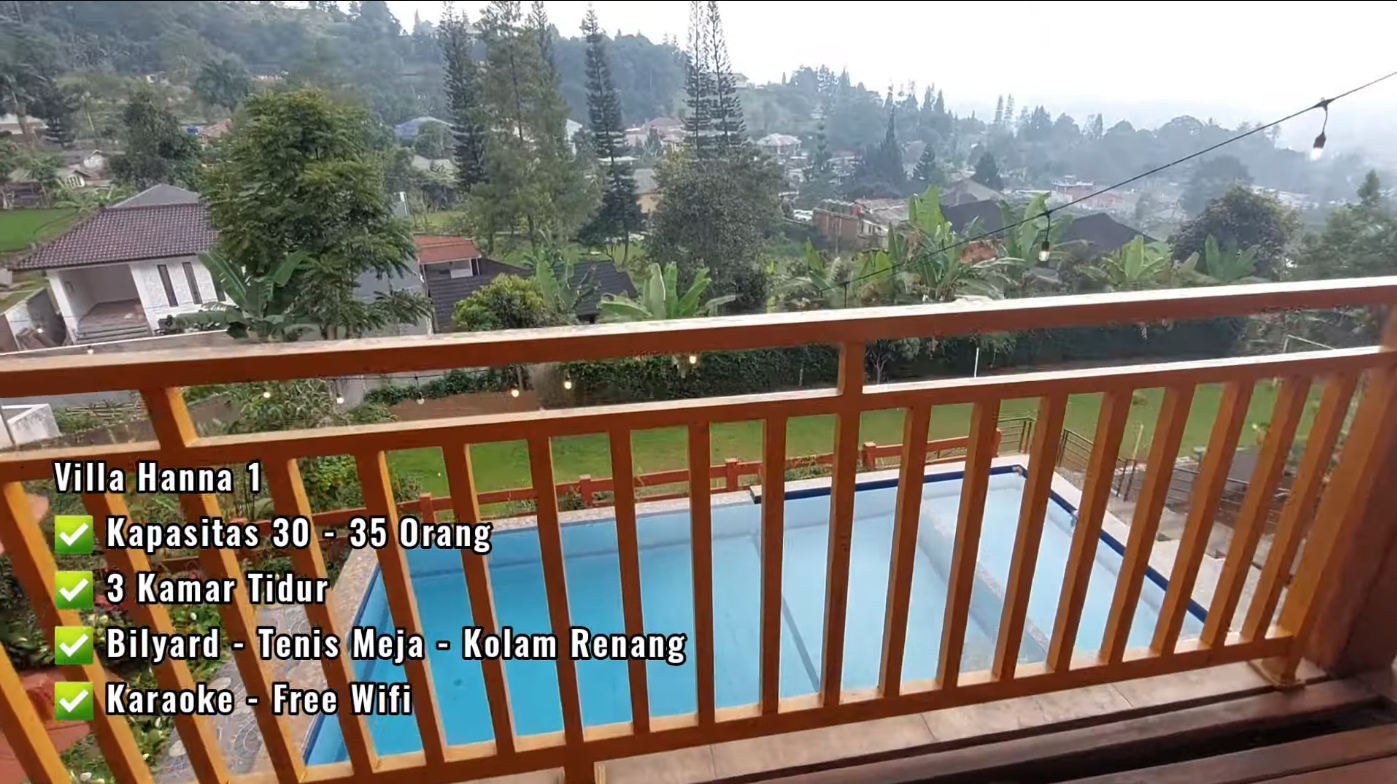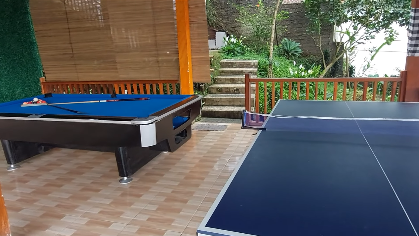 Karaoke youtube, Private pool, Wifi, halaman luas, playground, lapangan footsal, Billiard, Tenis meja, balkon, Alat barbeque, Akses jalan bagus, mountain view, dll