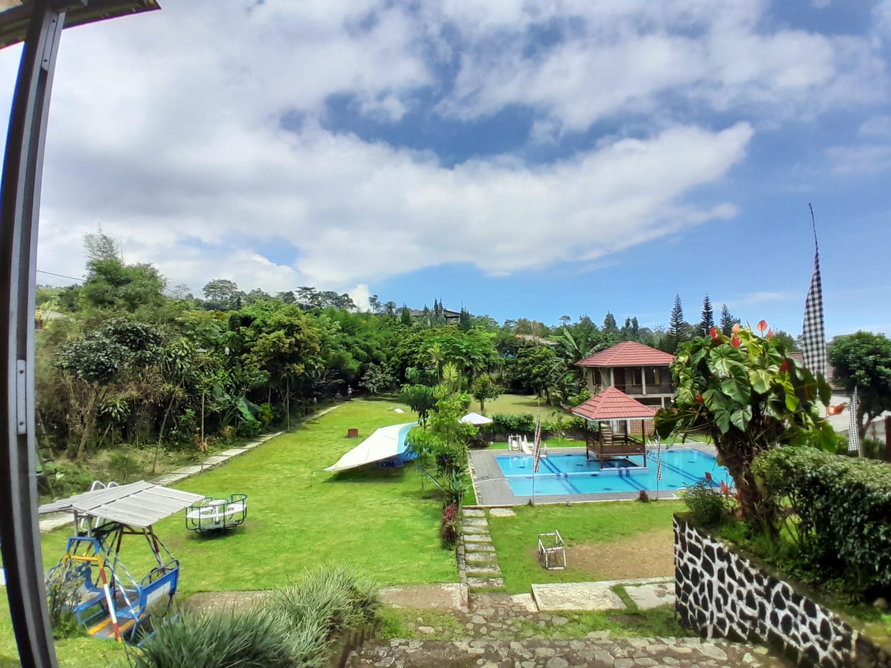 Karaoke Youtube, Private pool, Free wifi, halaman luas, Ruang keluarga, Balkon, PLayground, Billiard, Teras, top view, Alat barbegue, peralatan makan lengkap, Mata air gunung, water heater, dll